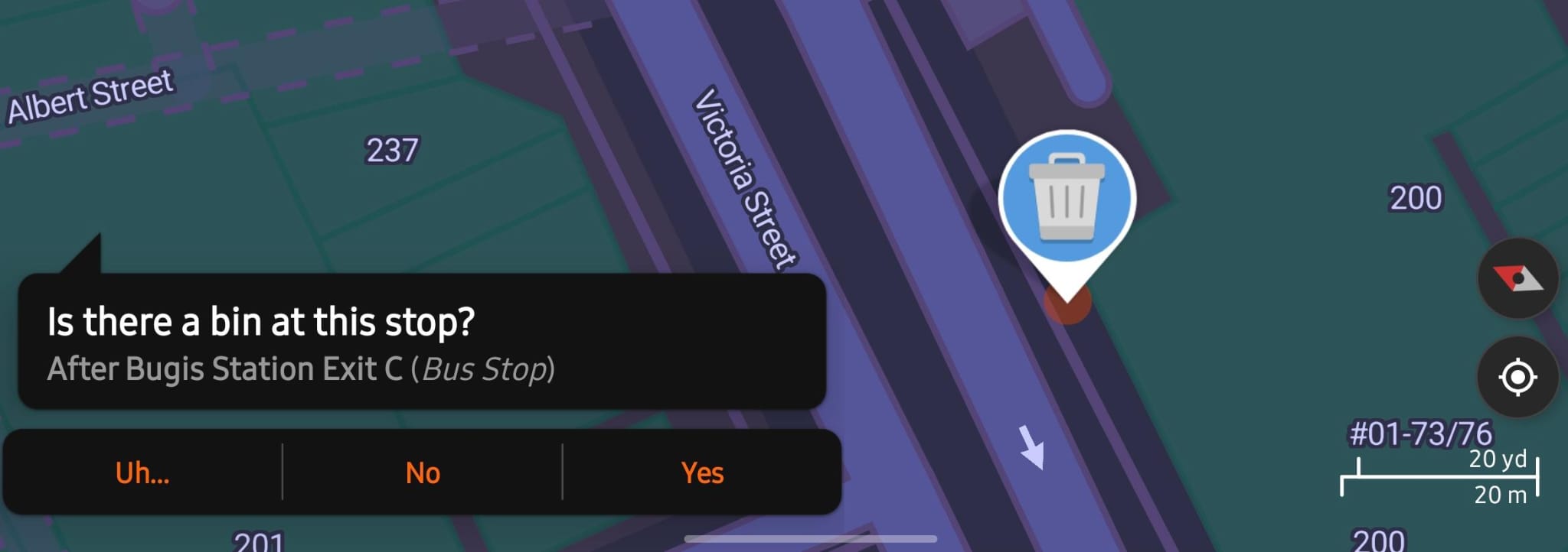 Instead of editing the raw data, users see simple questions called quests displayed on a map, such as “Is there a bin at this stop?”
