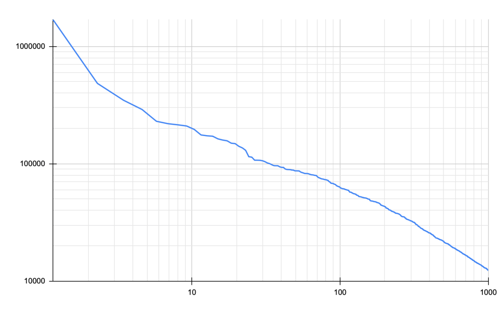 To try to compensate for the missing users, we can use a (linear) correction factor, defined as the ratio of my own actual global rank to my rank on the list. Using that, here is a more realistic (?) estimate of the top 1000 users: