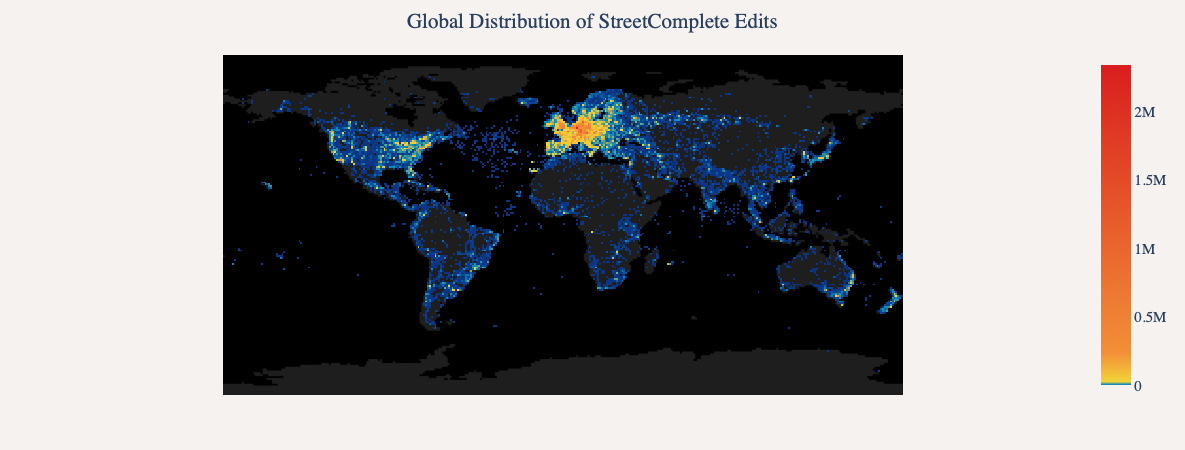This broadly matches the following distribution plot of StreetComplete quests solved, taken from here. Europe (in particular Germany) is a hotspot.